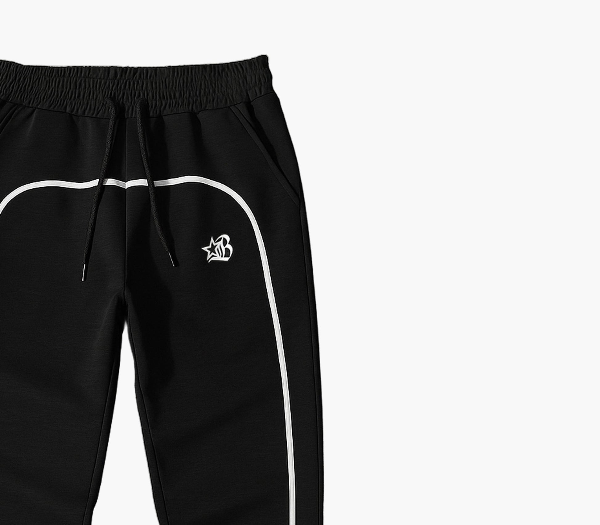 Men’s Athletic Jogger Pants – Black Loose Fit Trousers with White Stripe & Cuffed Ankles