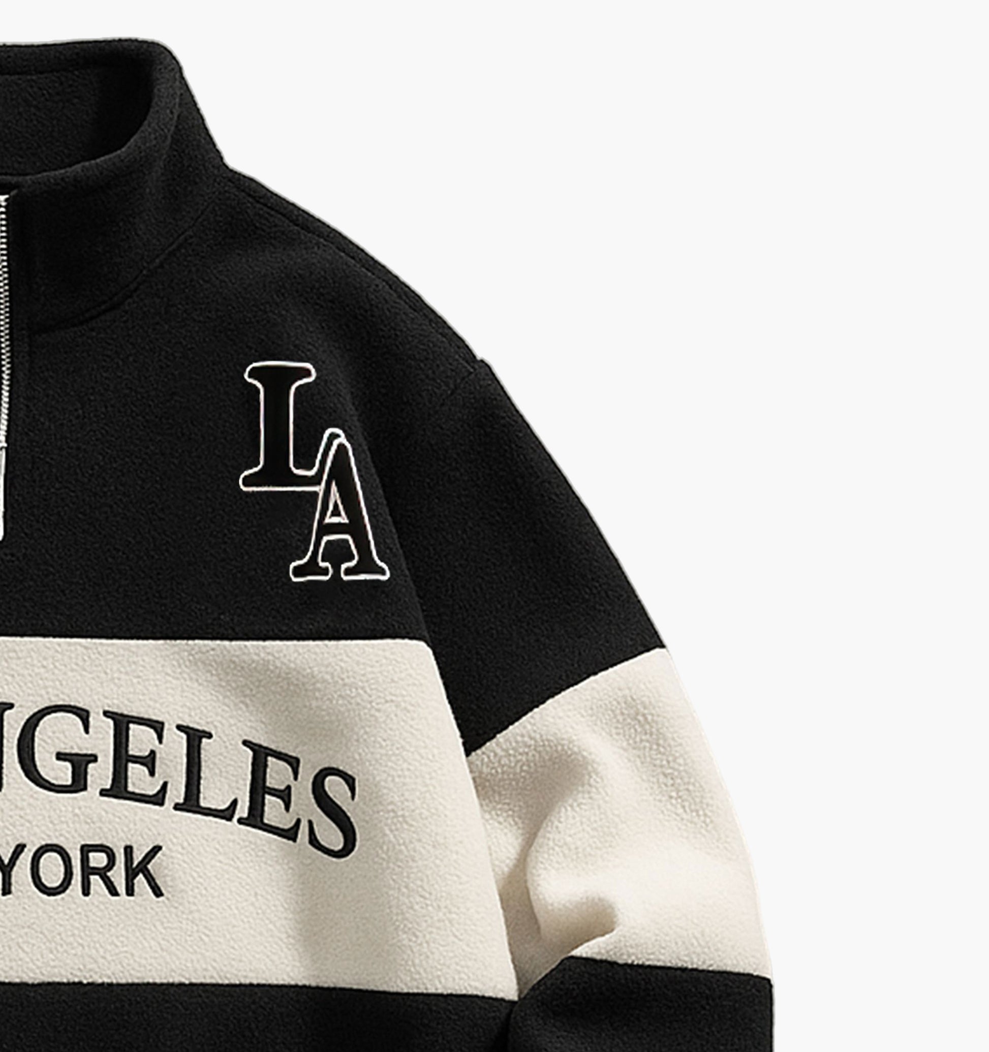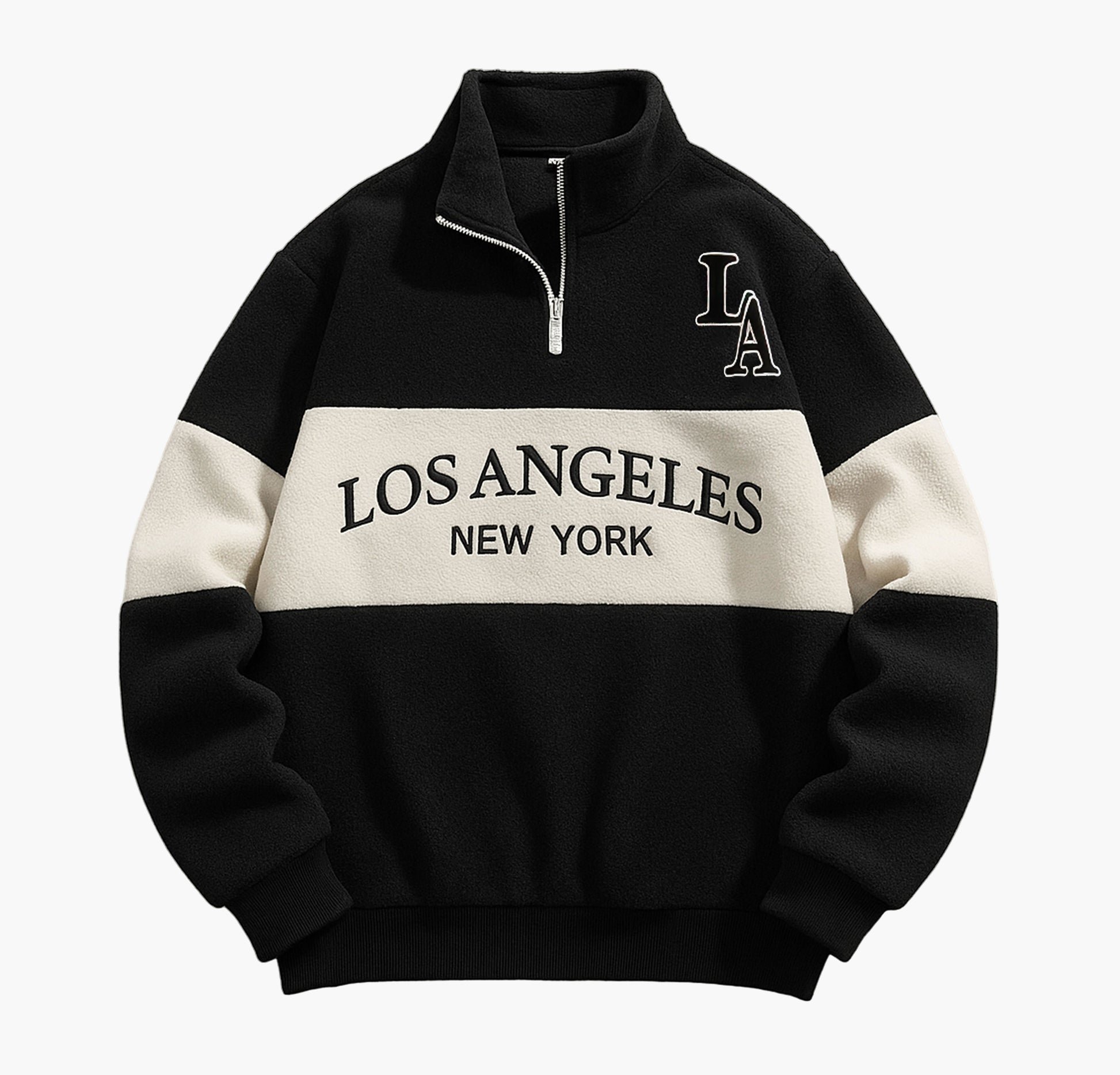 Men’s Block Fleece Sweatshirt – LA Embroidered Zip-Up with Stand Collar