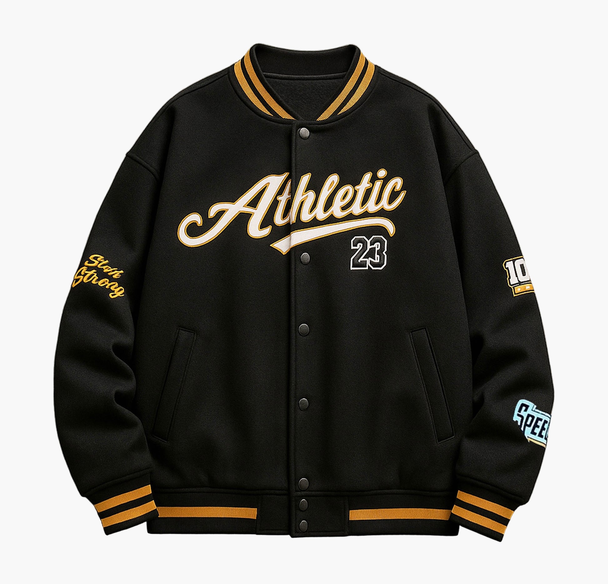 Add a touch of retro style to your wardrobe with this men’s casual baseball jacket. Featuring classic athletic lettering, a relaxed fit, and a snap-button front, it offers a comfortable and stylish look for everyday wear.