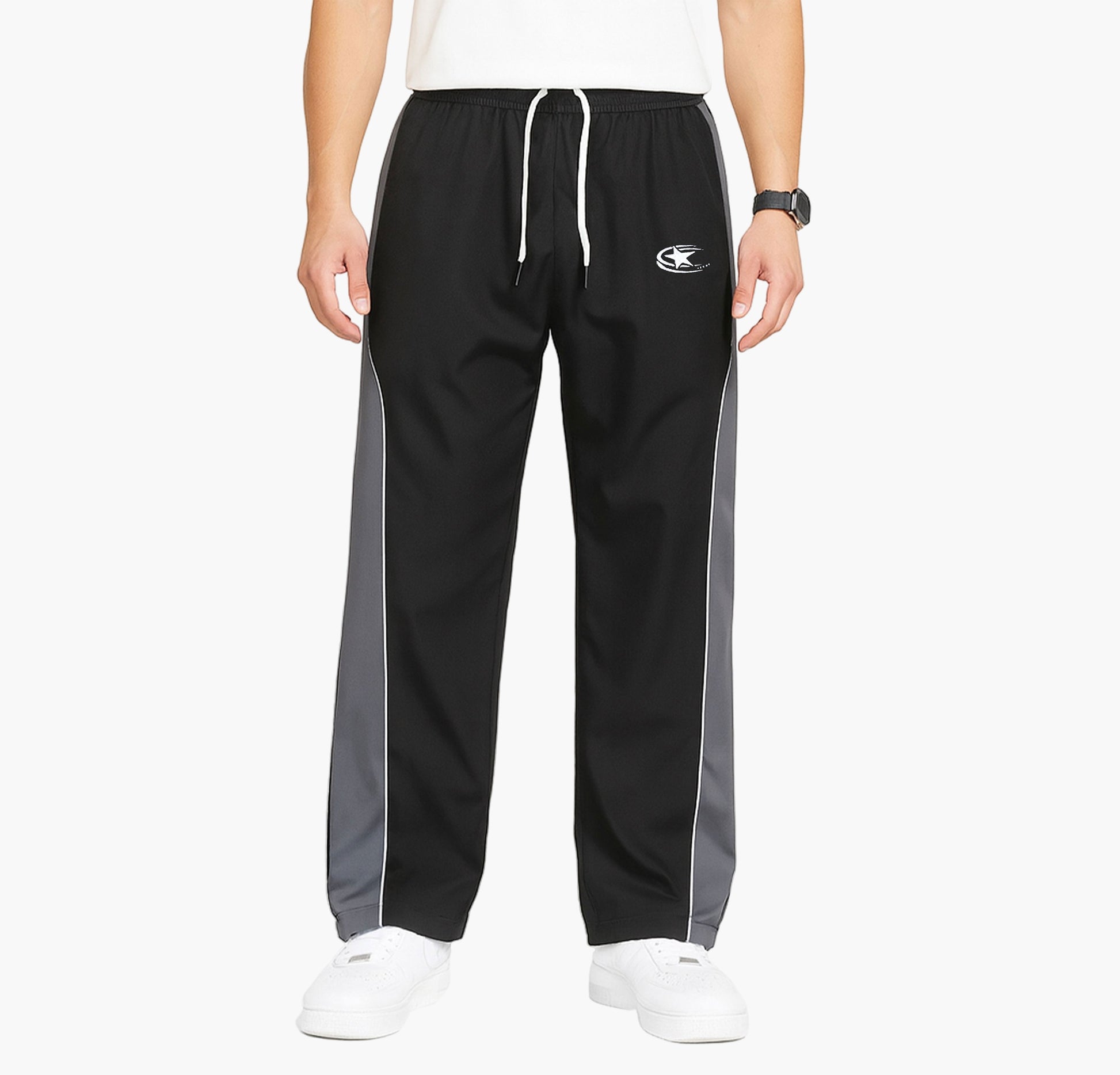 Men’s Color Block Joggers – Gray & Black Straight-Leg Pants with Geometric Print