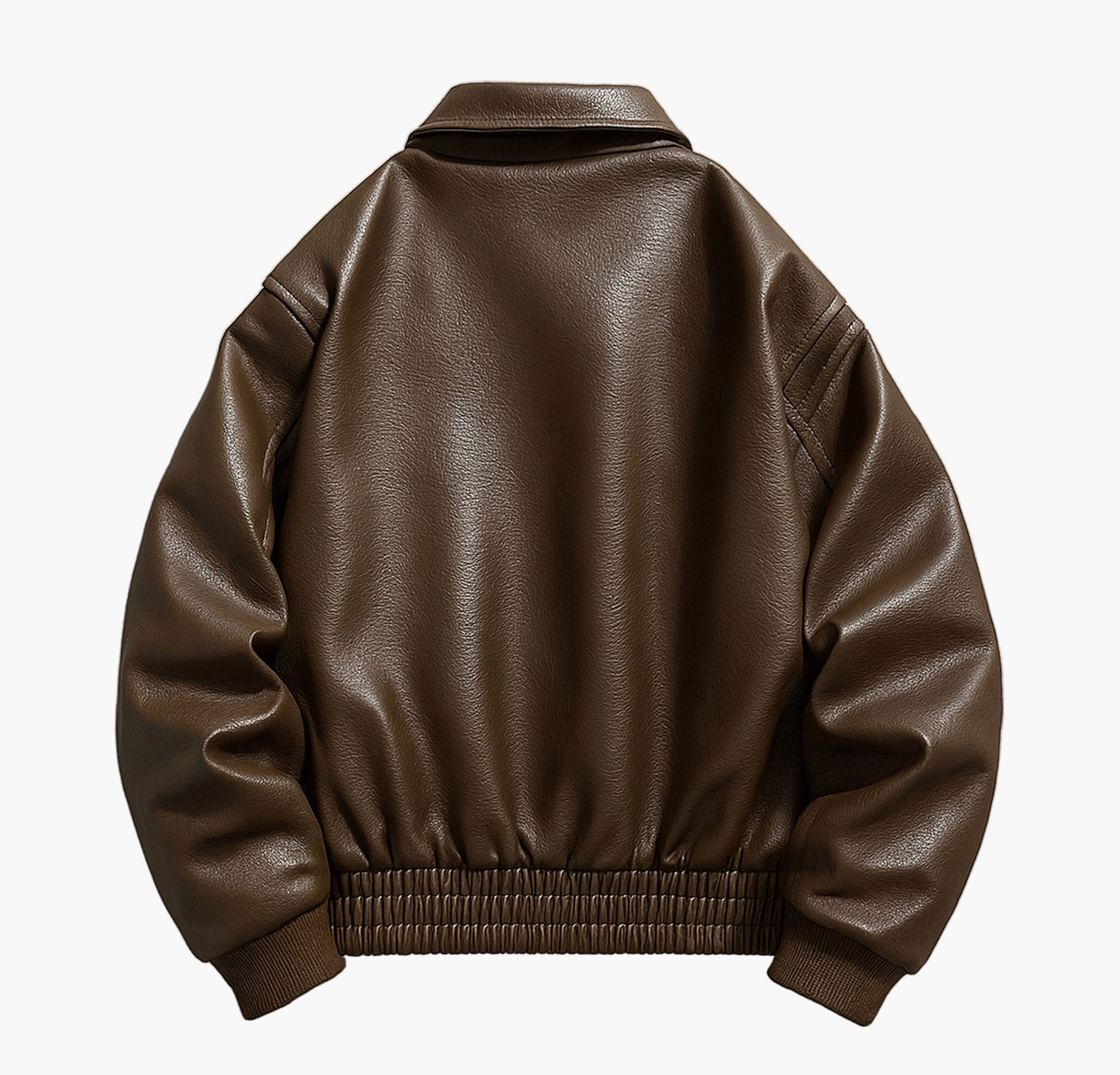 Men’s Faux Leather Bomber Jacket – Loose Fit Zip-Up with Flap Pockets
