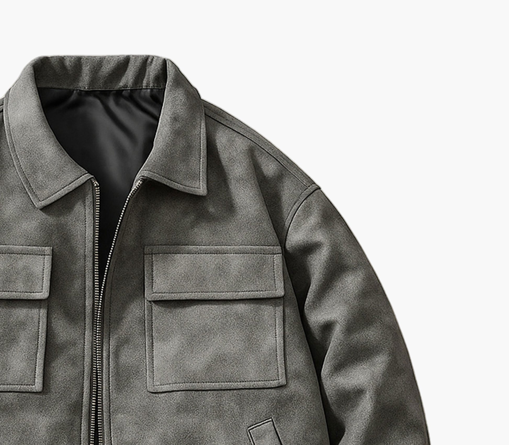 Men’s Gray Bomber Jacket – Casual Zip-Up Streetwear Coat with Pockets