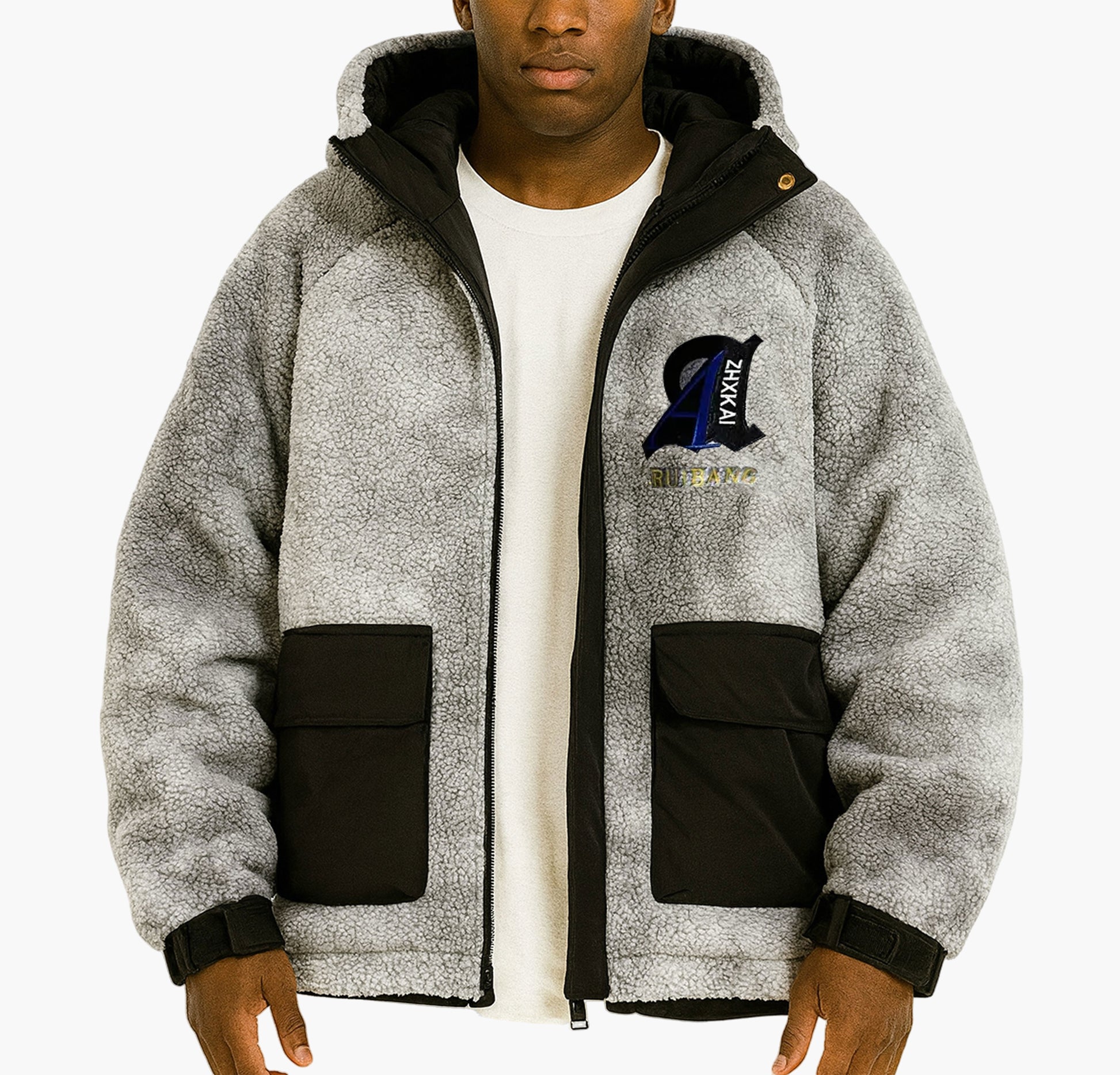 Men’s Hooded Fleece Jacket – Loose Fit Zip-Up Casual Coat
