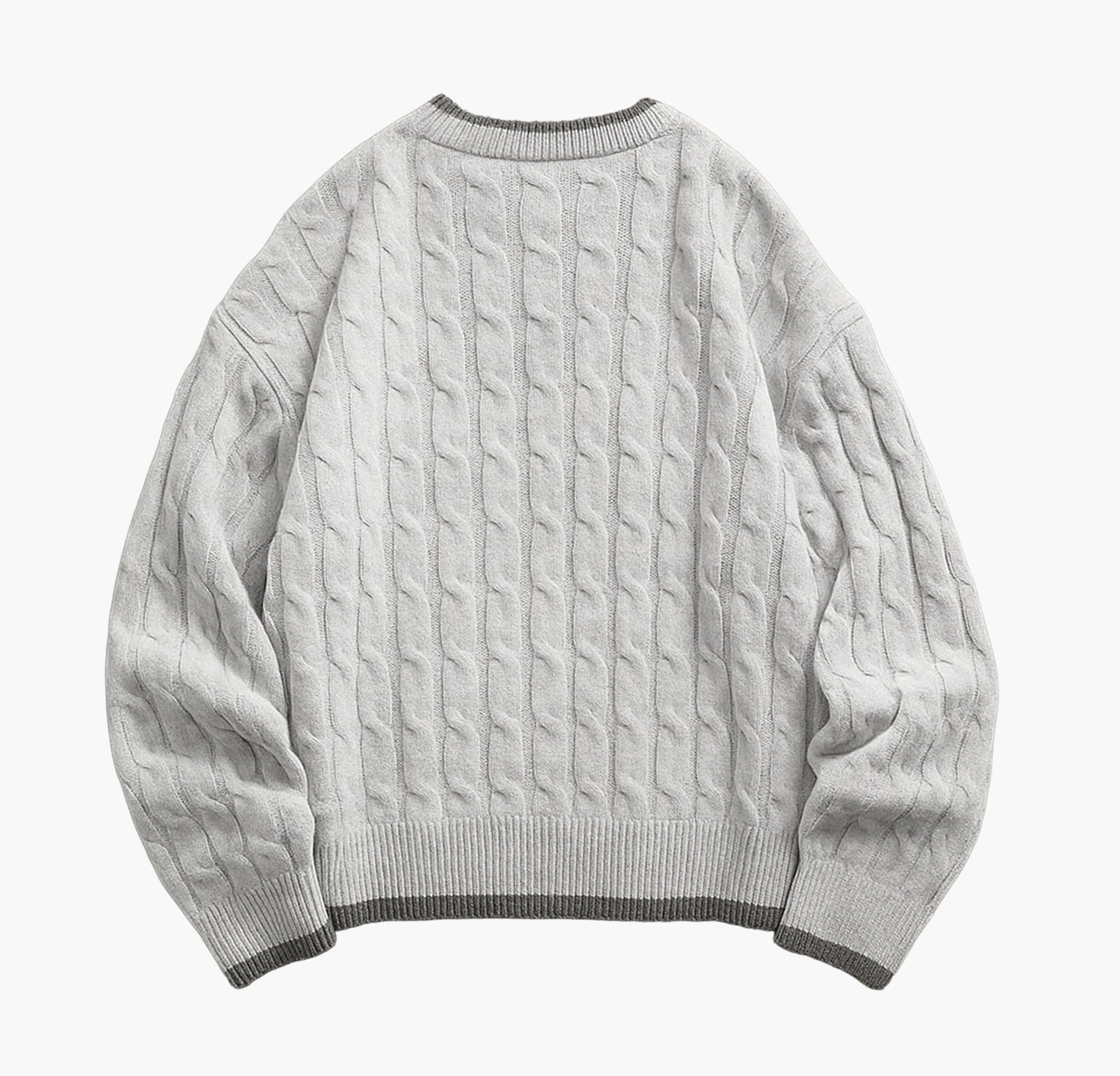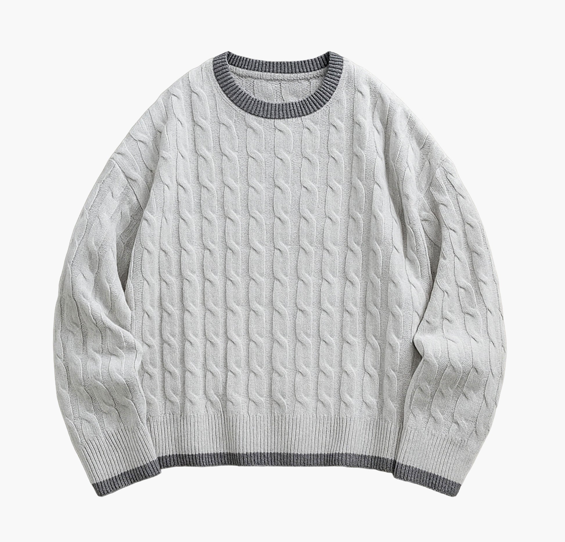 Men’s Navy Crewneck Sweater – Cable-Knit Long Sleeve Pullover for All Seasons