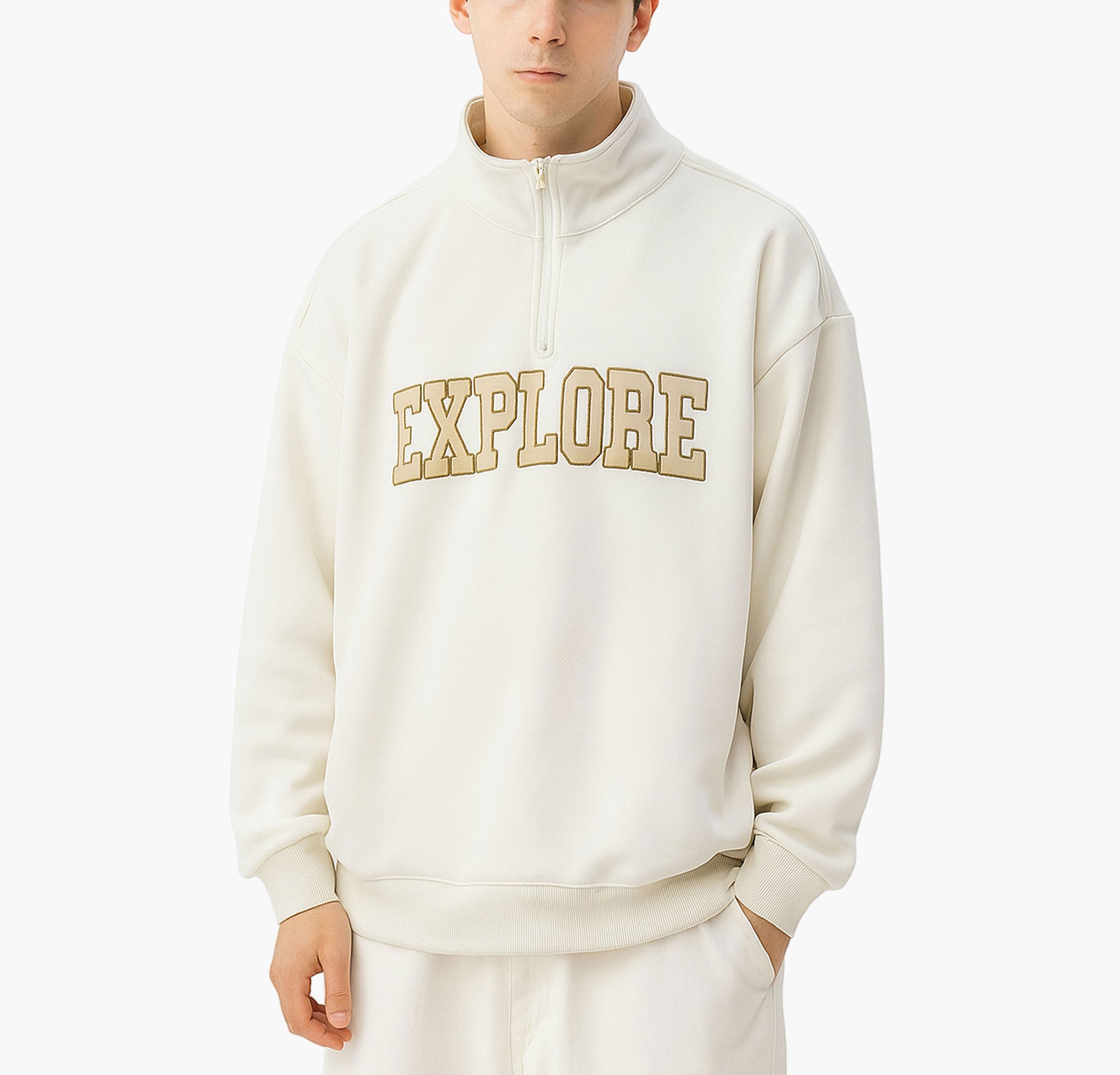 Men’s Oversized Half-Zip Sweatshirt – Thick Knit Casual Pullover