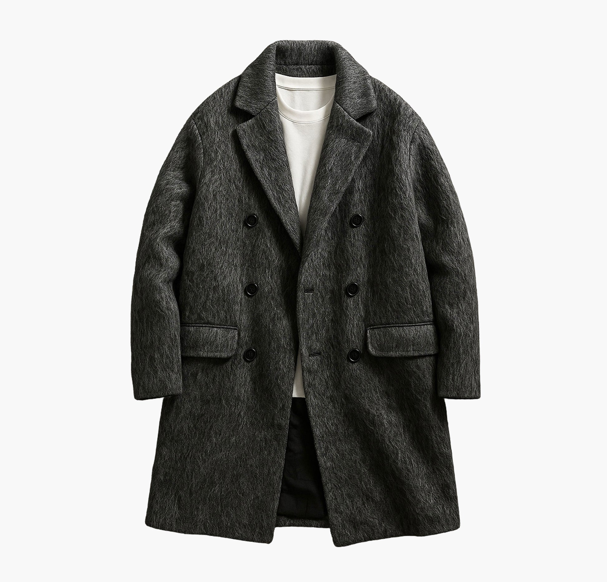 Men’s Tweed Overcoat – Classic Lapel Winter Jacket