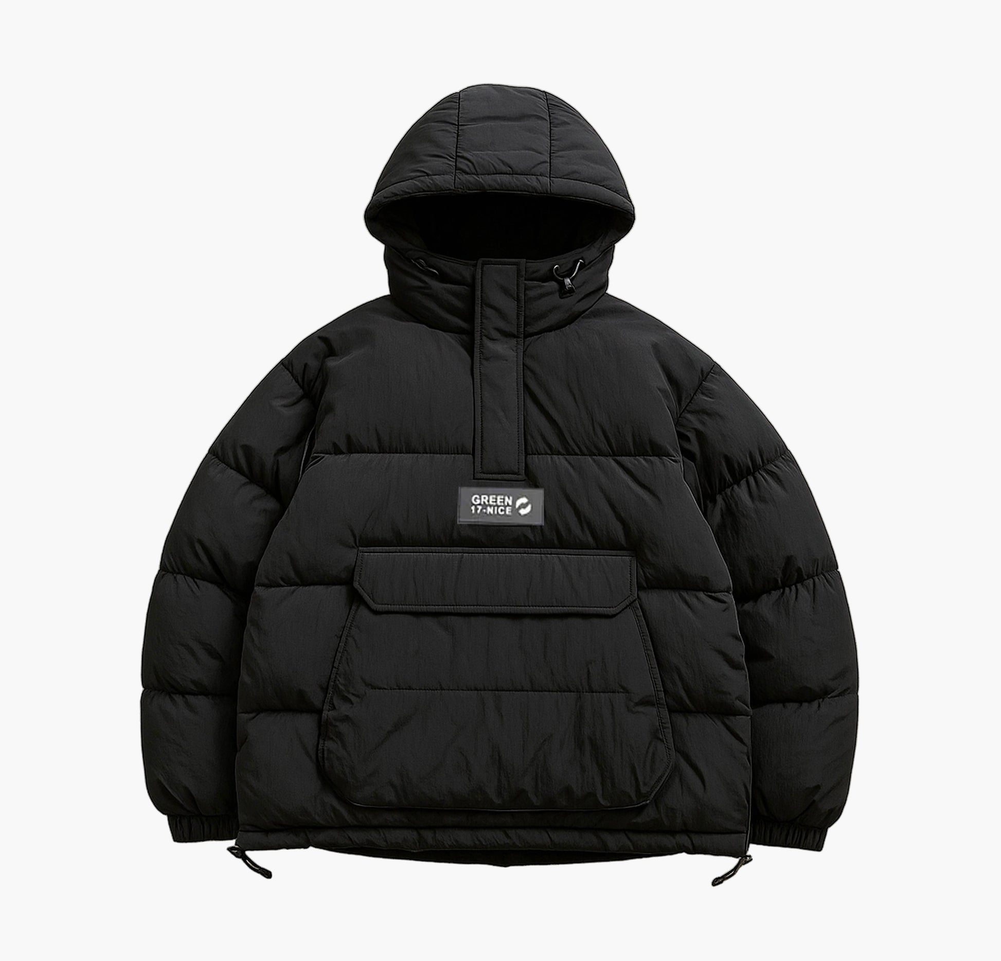 Men’s Winter Hooded Jacket – Warm Half-Zip Coat with Large Pockets