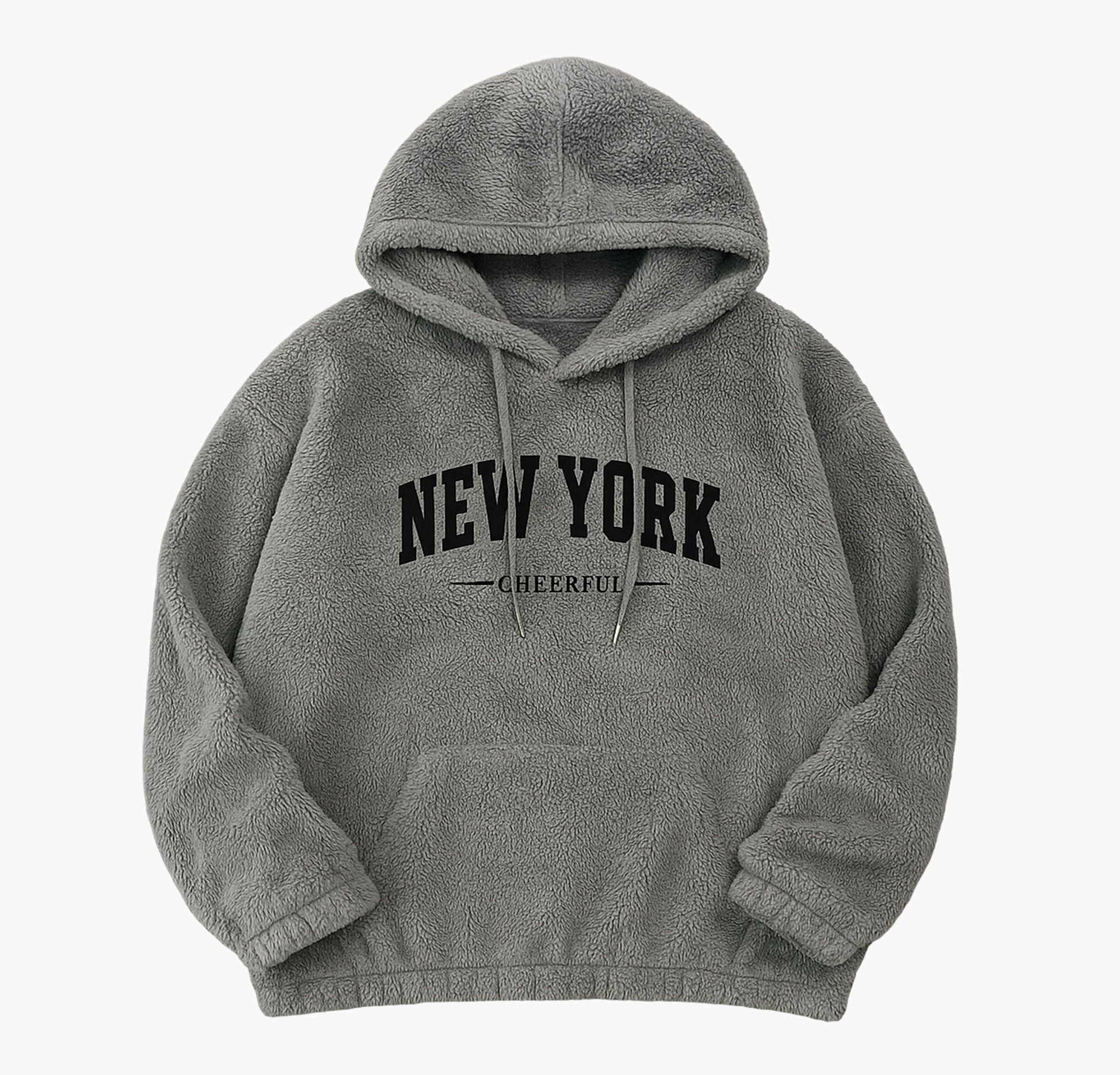 Men’s York Graphic Hoodie – Warm Fleece Pullover with Letter Print & Pocket
