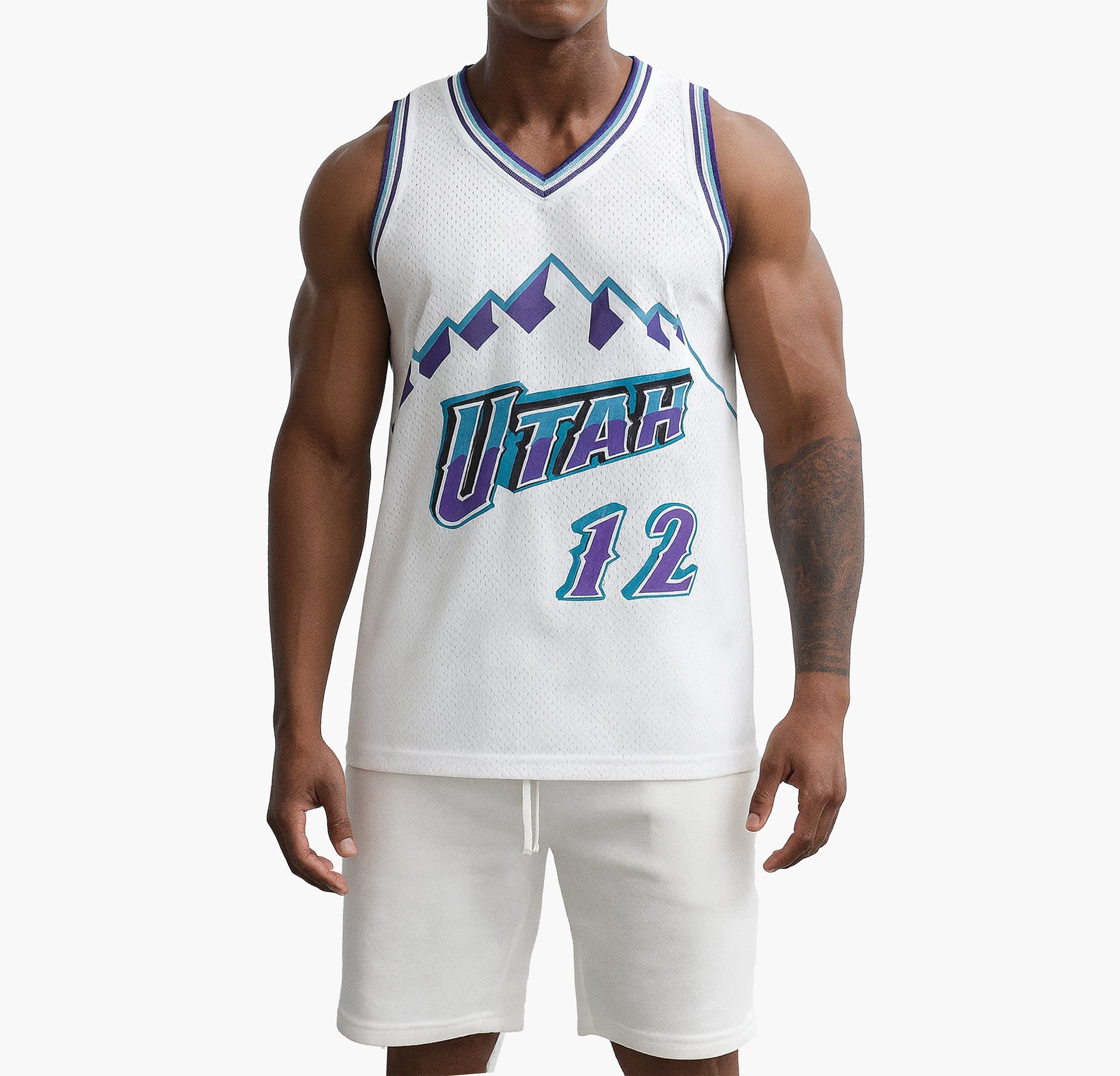 Step onto the court in style with this men’s white basketball jersey featuring embroidered #12 and a bold “UTAH” mountain print across the chest. Designed with a breathable, sleeveless cut, it delivers cooling comfort during summer sports, training sessions, and competitive play. Made from lightweight performance fabric, this jersey combines durability with a relaxed athletic fit, making it ideal for both basketball practice and casual streetwear. A versatile sports top that blends functional design with standout graphic detail.