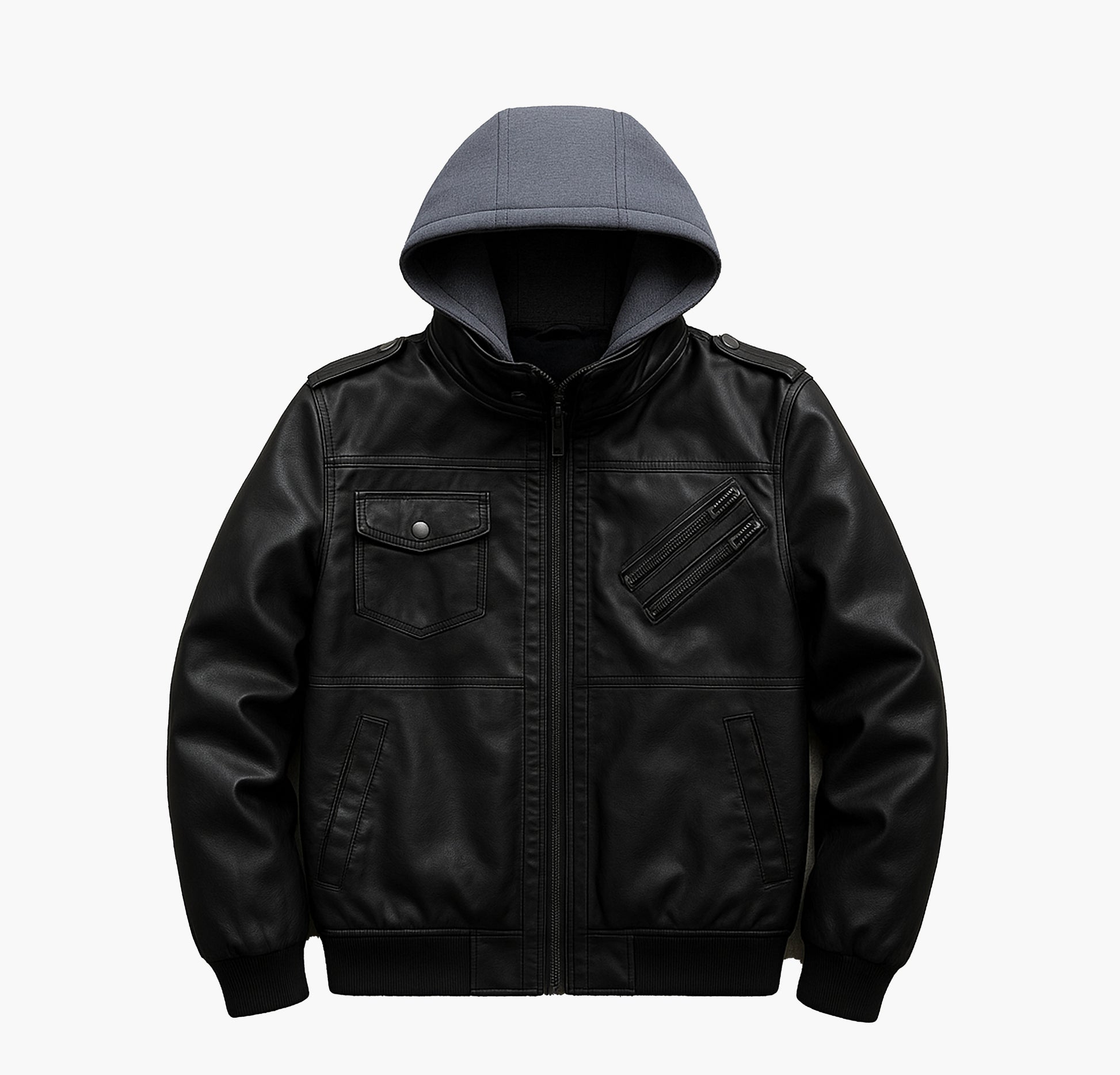 Men’s Hooded Jacket – Full-Zip Motorcycle & Casual Coat with Button Closure
