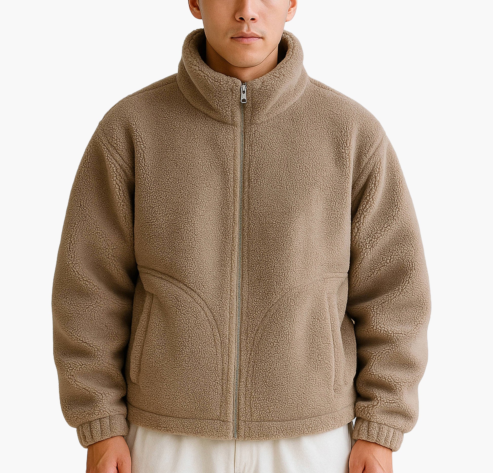 Men’s Reversible Winter Jacket – Sheepskin-Like Full-Zip Coat
