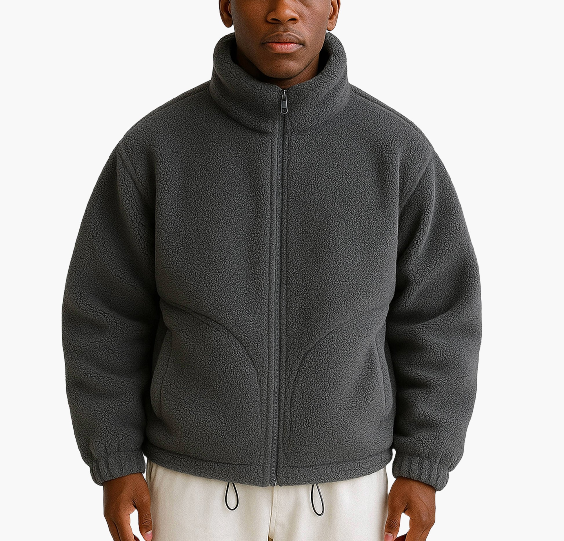 Reversible Sheepskin-Like Winter Jacket – Full-Zip Stand Collar Coat
