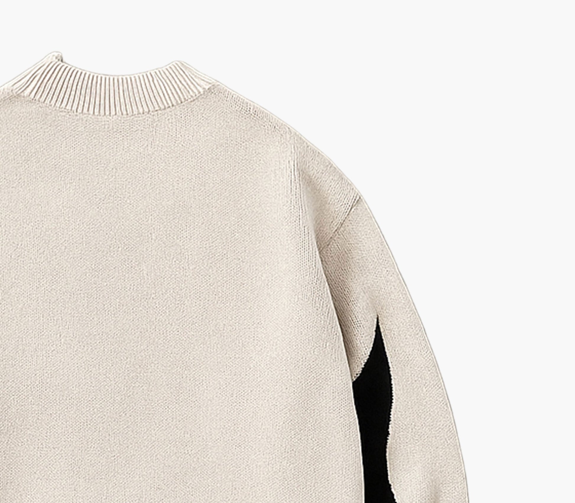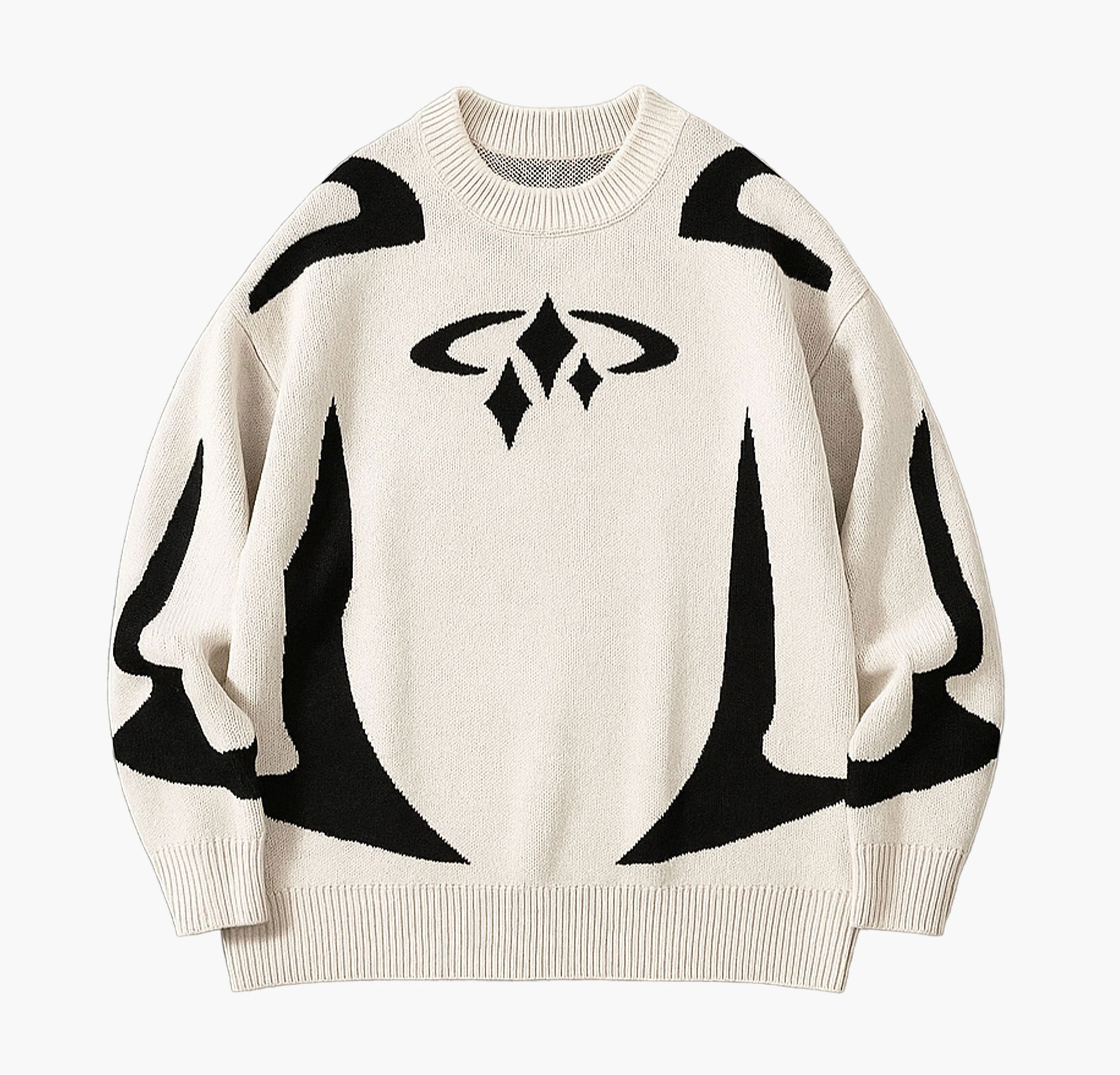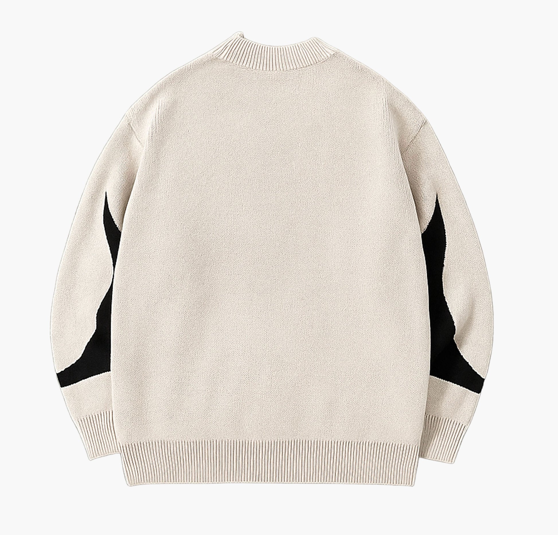 Men’s Casual Graphic Print Knit Sweater – Black & White Abstract Design Pullover