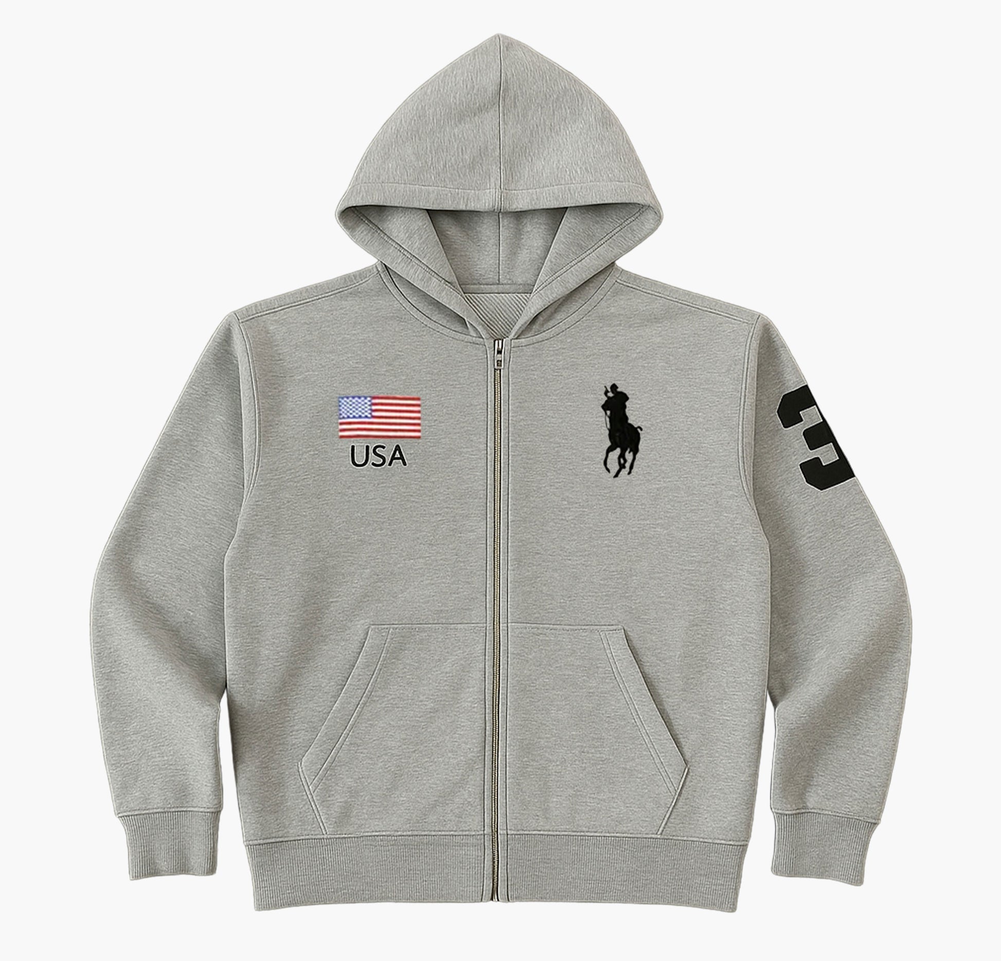 Bring back early 2000s fashion with this women’s Y2K-inspired hoodie. Designed with a relaxed oversized fit, long sleeves, and a full zip-up closure, it features bold lettering and a horse logo back print for a vintage streetwear look. The light grey and black tones make it easy to style with casual outfits.