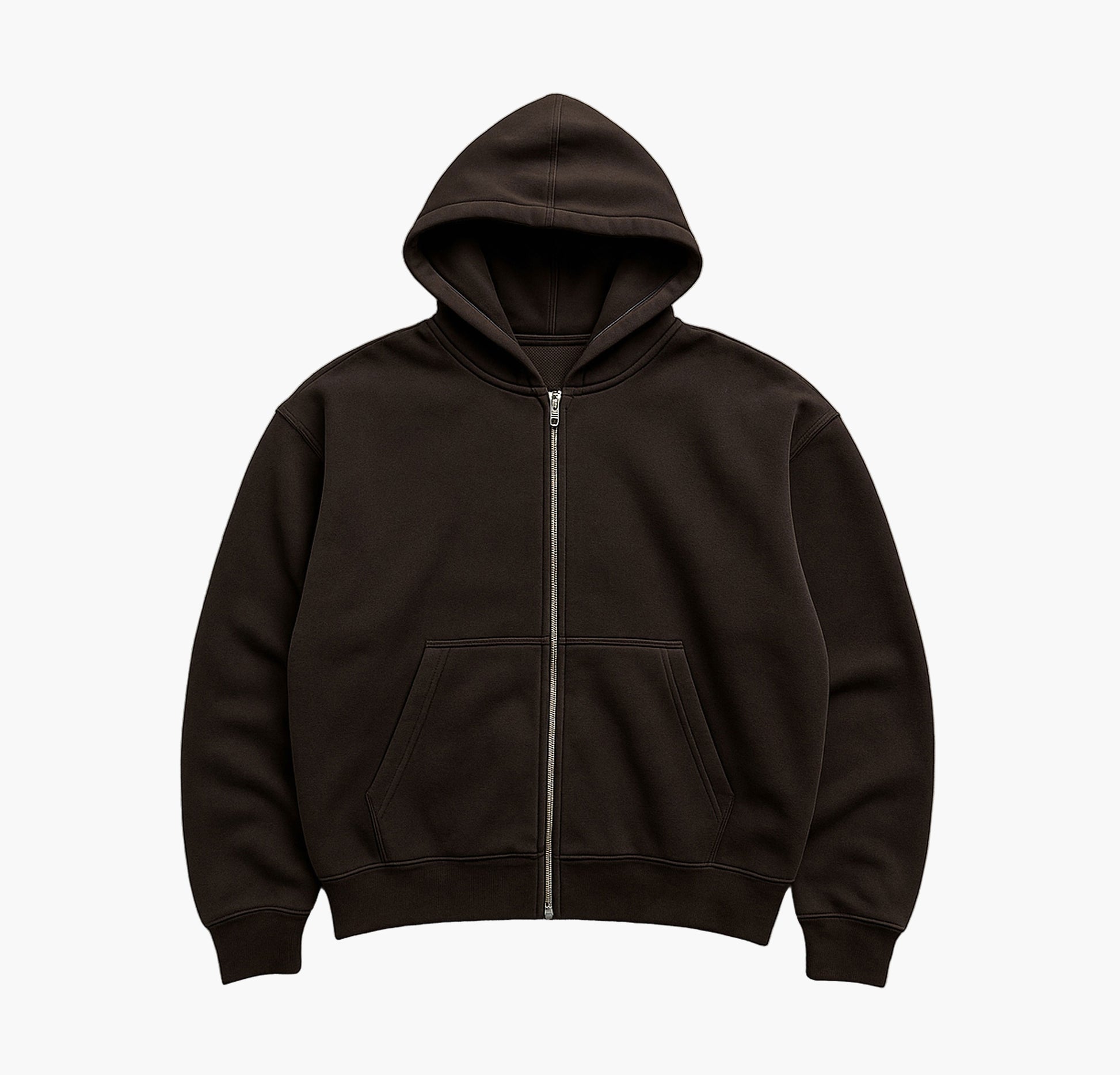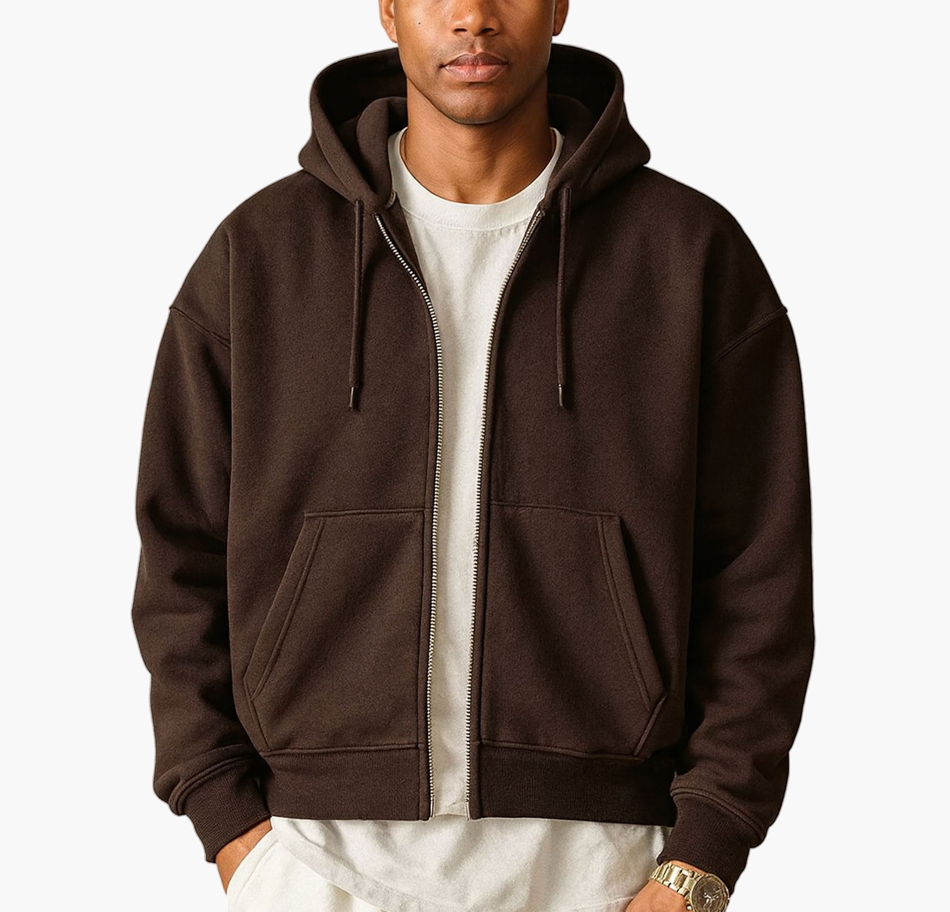 Men’s Full-Zip Hooded Jacket – Oversized Brown Casual Outerwear