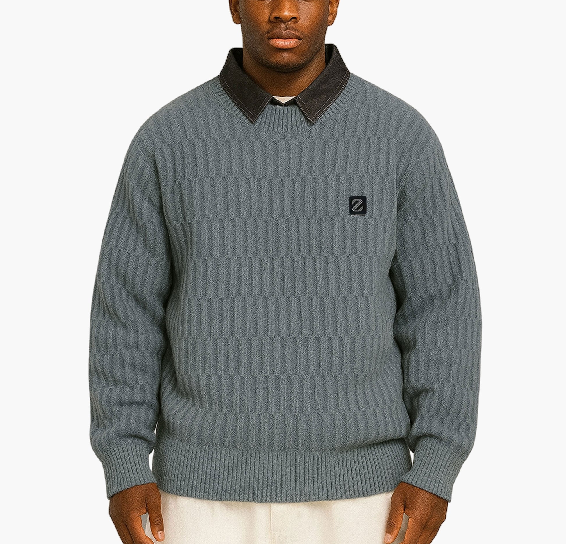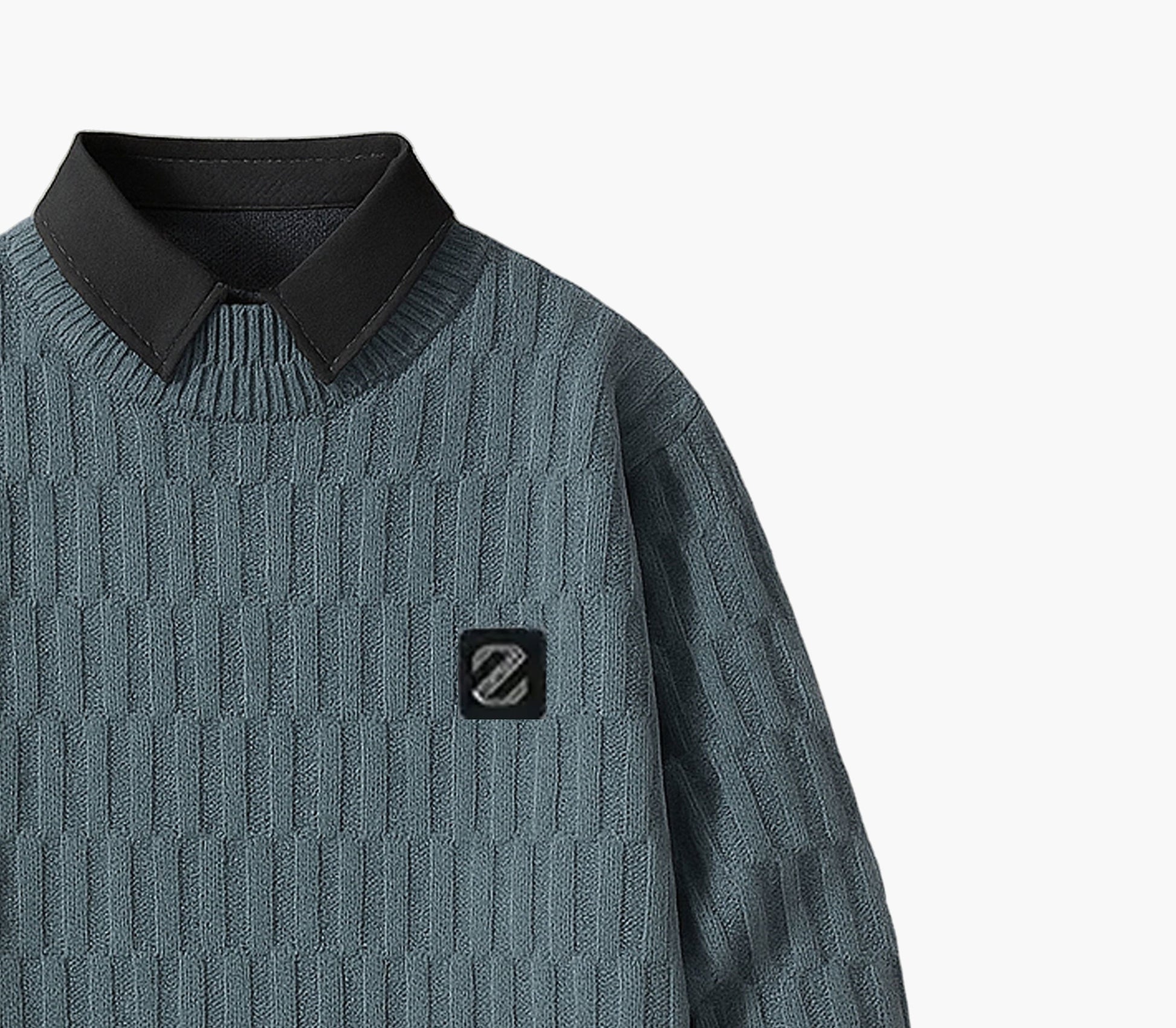 Men’s Thermal Knit Sweater – Slim Fit Mock Two-Piece Pullover with Collar