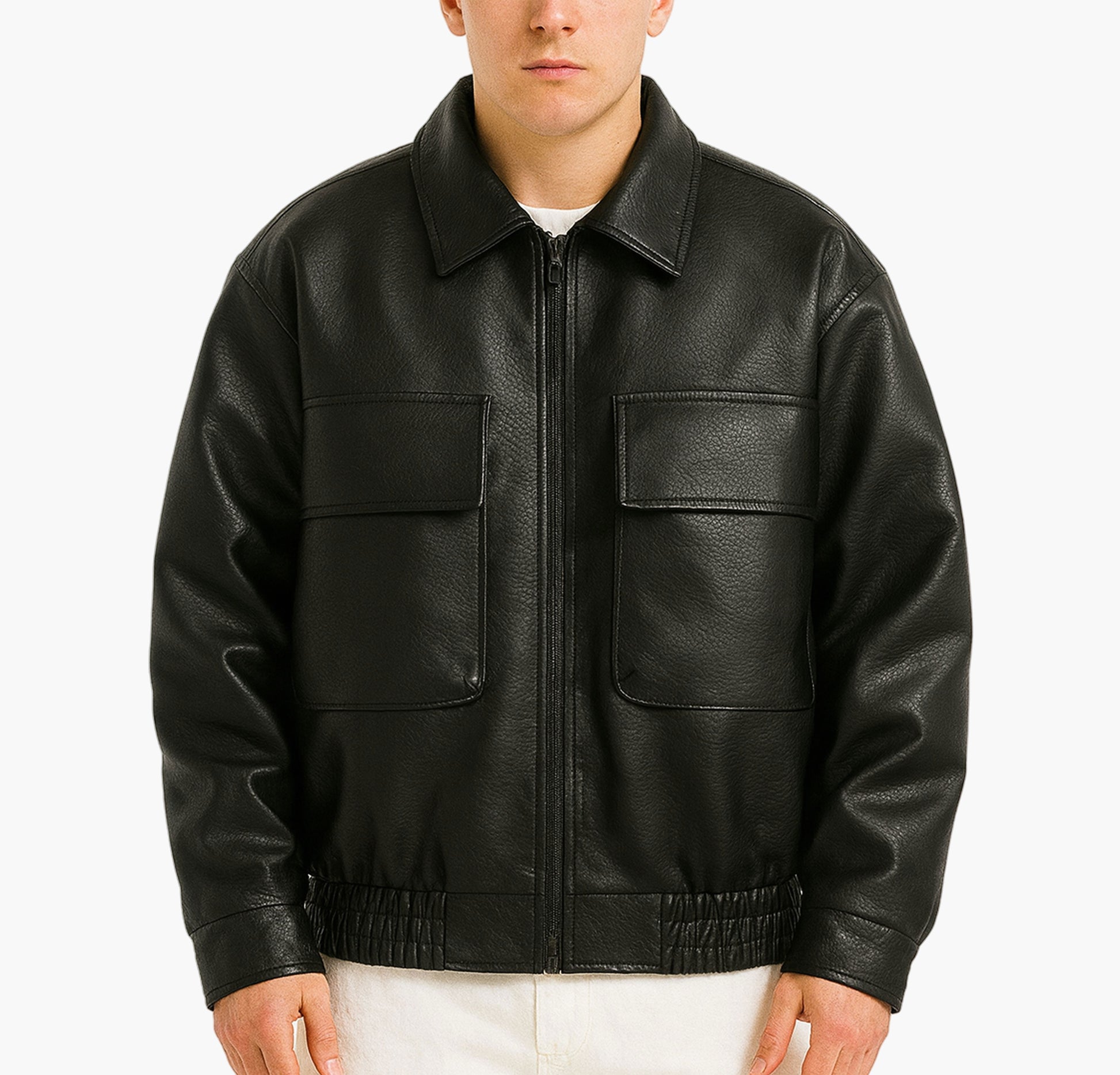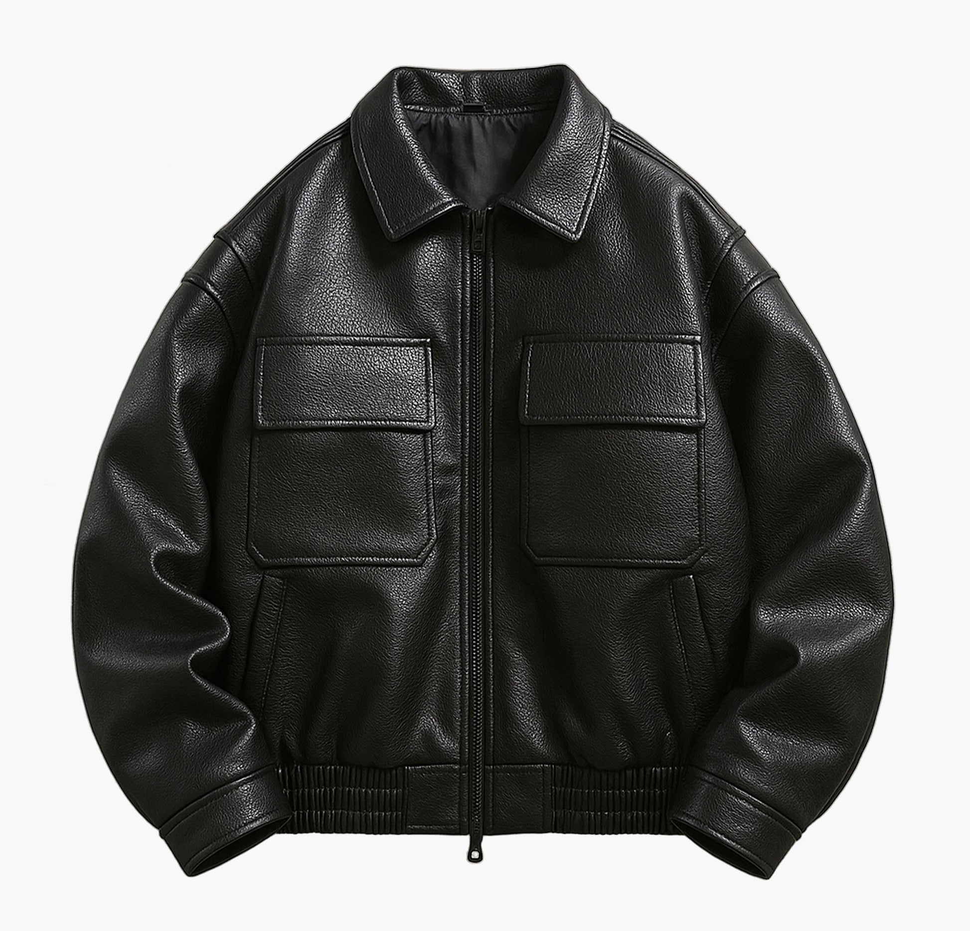 Men’s PU Leather Motorcycle Jacket – Full-Zip Biker Style Coat