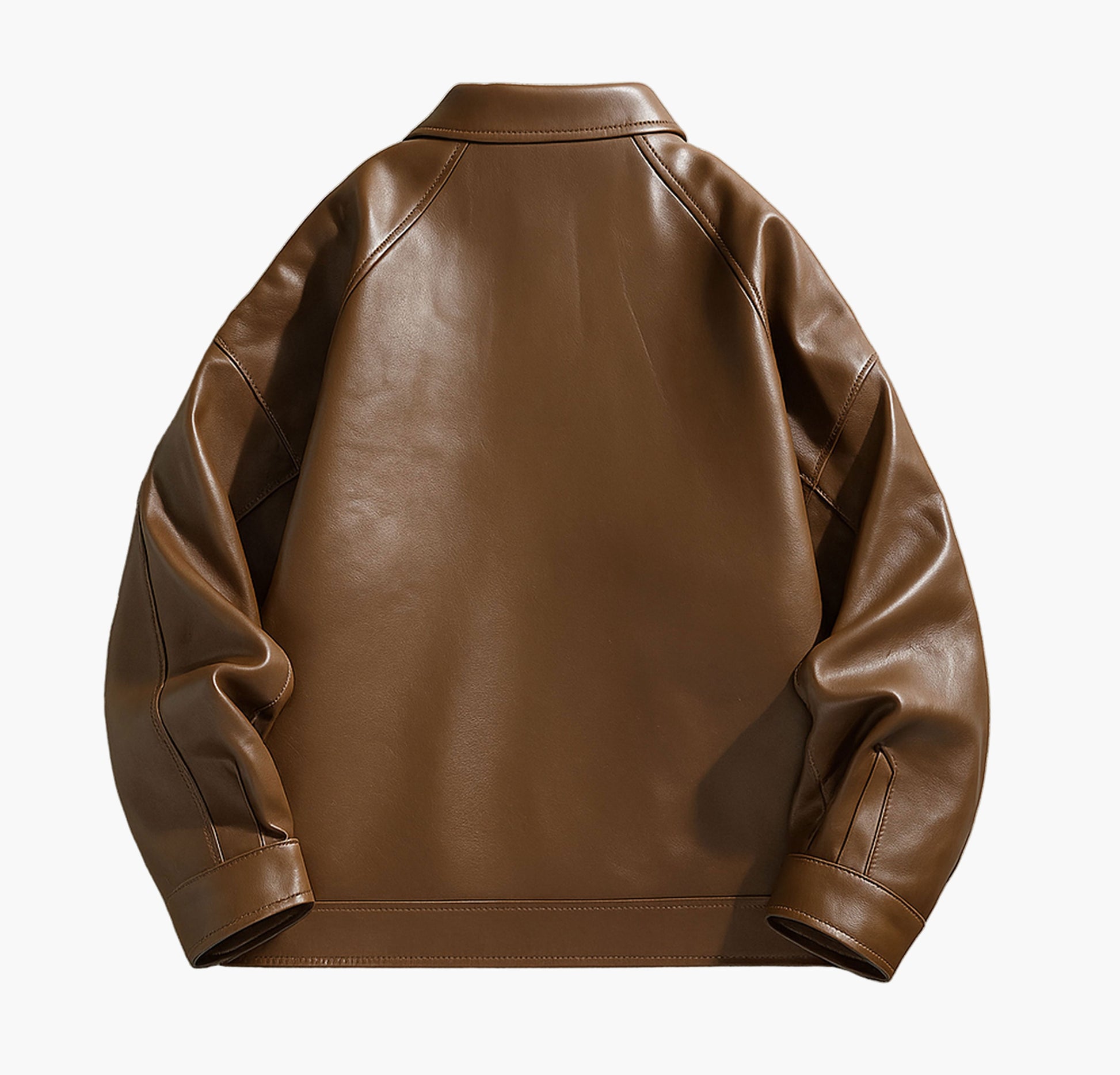 Men’s Glossy PU Jacket – Zip-Up Lapel Collar Outerwear